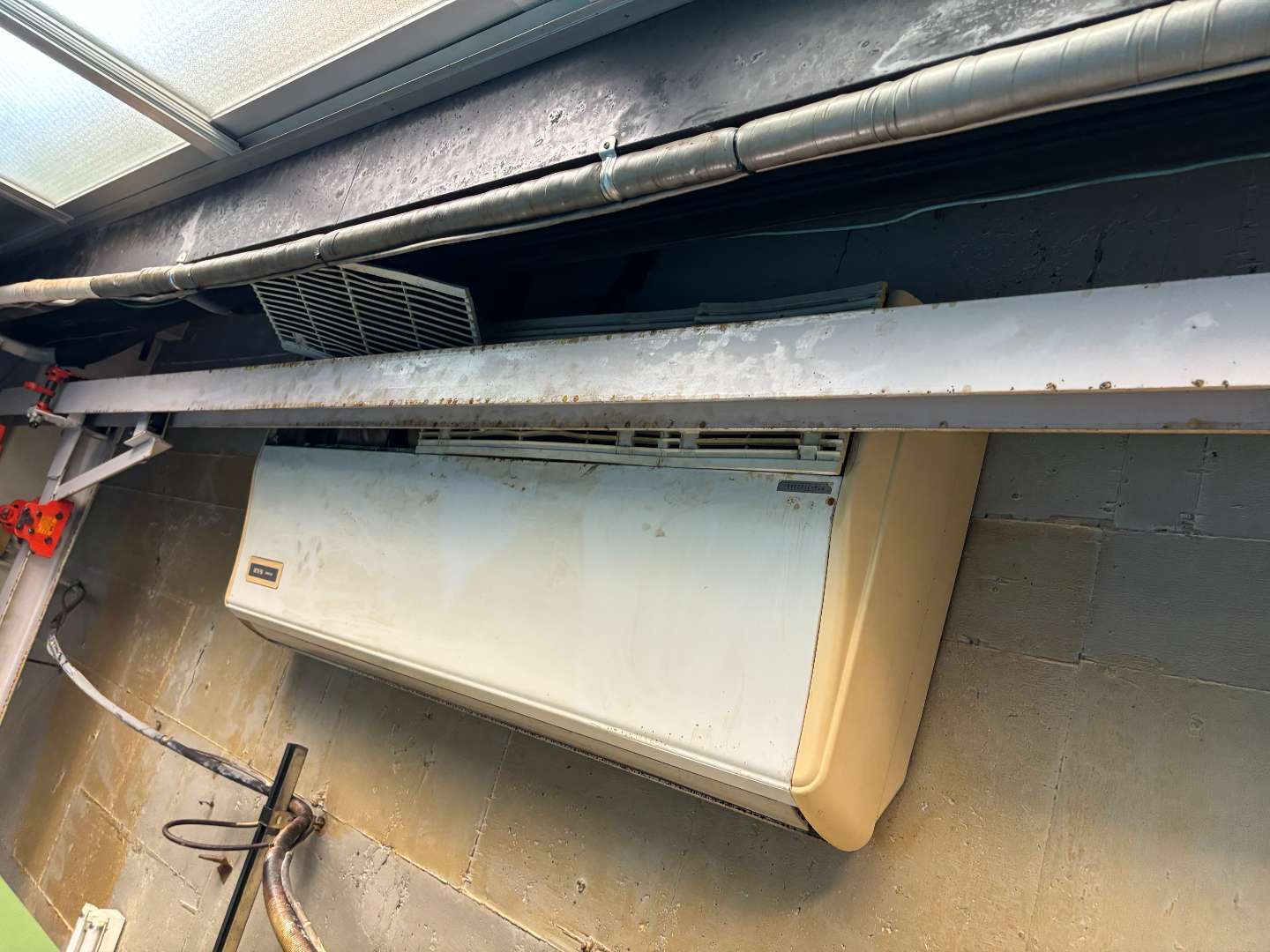 室内機が機械の上にあるためかなりシビアでしたがなんとか吊り下ろし完了😊